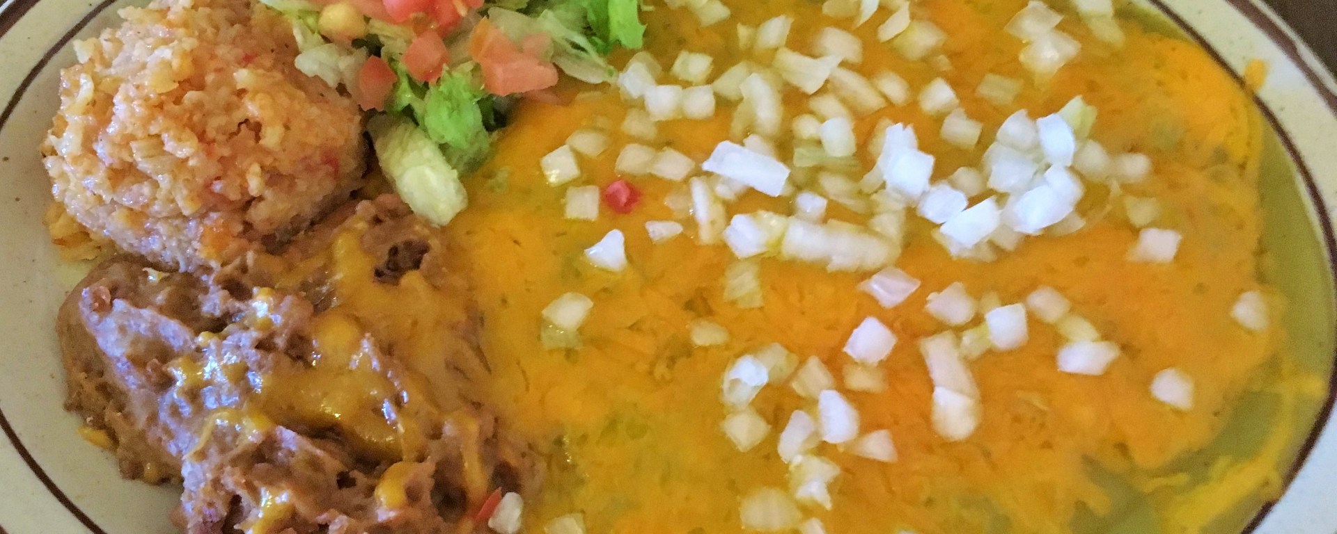 We recently had family visiting from out of town, and decided they needed to experience Cueva de Oso before we headed south to try to catch a glimpse of the Marfa Lights (which were clear and active that night). My husband orders the plate called “Two and Two”… two enchiladas and two tacos of your choice. He says it’s the perfect amount of food that is filling but doesn’t leave him stuffed. He orders two soft chicken tacos, and two cheese enchiladas with red sauce and an egg on top. Lately I’ve been branching out from my usual favorite of Tacos a la Parilla (steak tacos with sautéed jalapenos, onion and tomatoes) and most recently enjoyed the green chicken enchiladas. Our guests all loved their flat enchiladas – something they weren’t accustomed to eating. I’ll be ordering the green chicken enchiladas again.