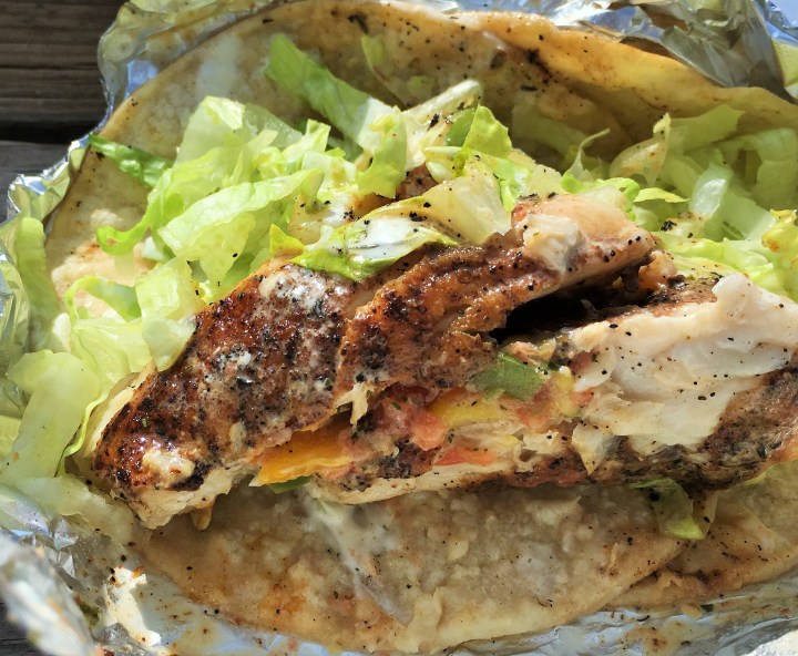 Blackened Grouper taco and Blackened Shrimp Po’boy…