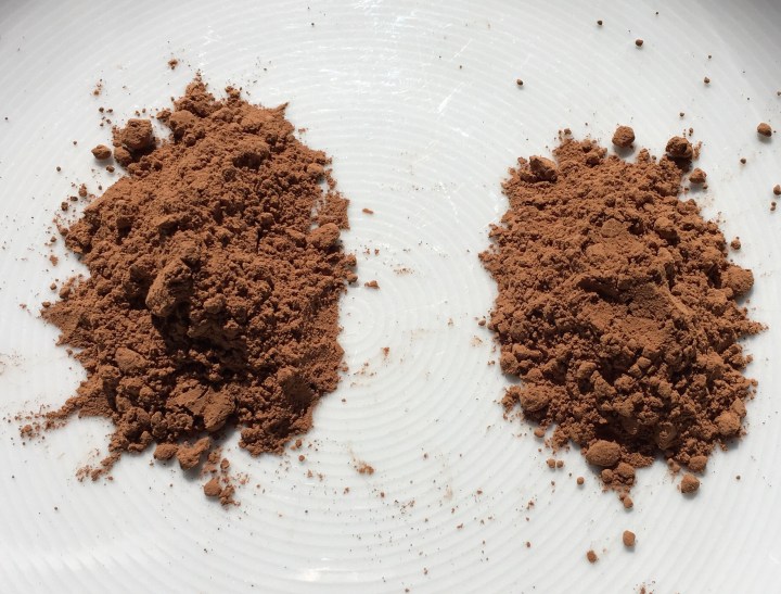 Cocoa looks like cacao, but it’s not the same. Cocoa powder is raw cacao that has been roasted at high temperatures. There are two types of cocoa powder: Dutch-pressed cocoa and natural cocoa powder. Dutch-pressed is commonly known as dark cocoa. It undergoes more processing with an alkalized chemical solution to produce a rich, less-acidic flavor than the natural cocoa powder. In recipes that contain baking soda, you’ll often find natural cocoa because the baking soda alkalizes the bitter cocoa to make it tastier.