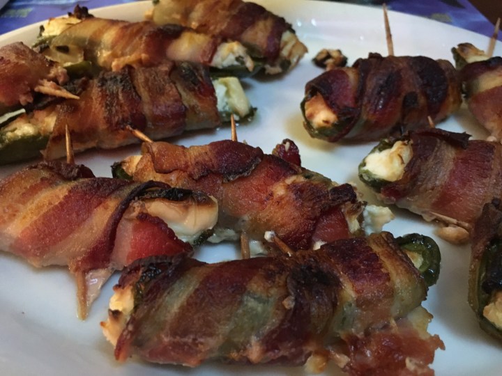 I make poppers with fresh jalapeños, seeds removed, stuffed with cream cheese and snuggled with bacon, roasted to tender perfection. This was not that.