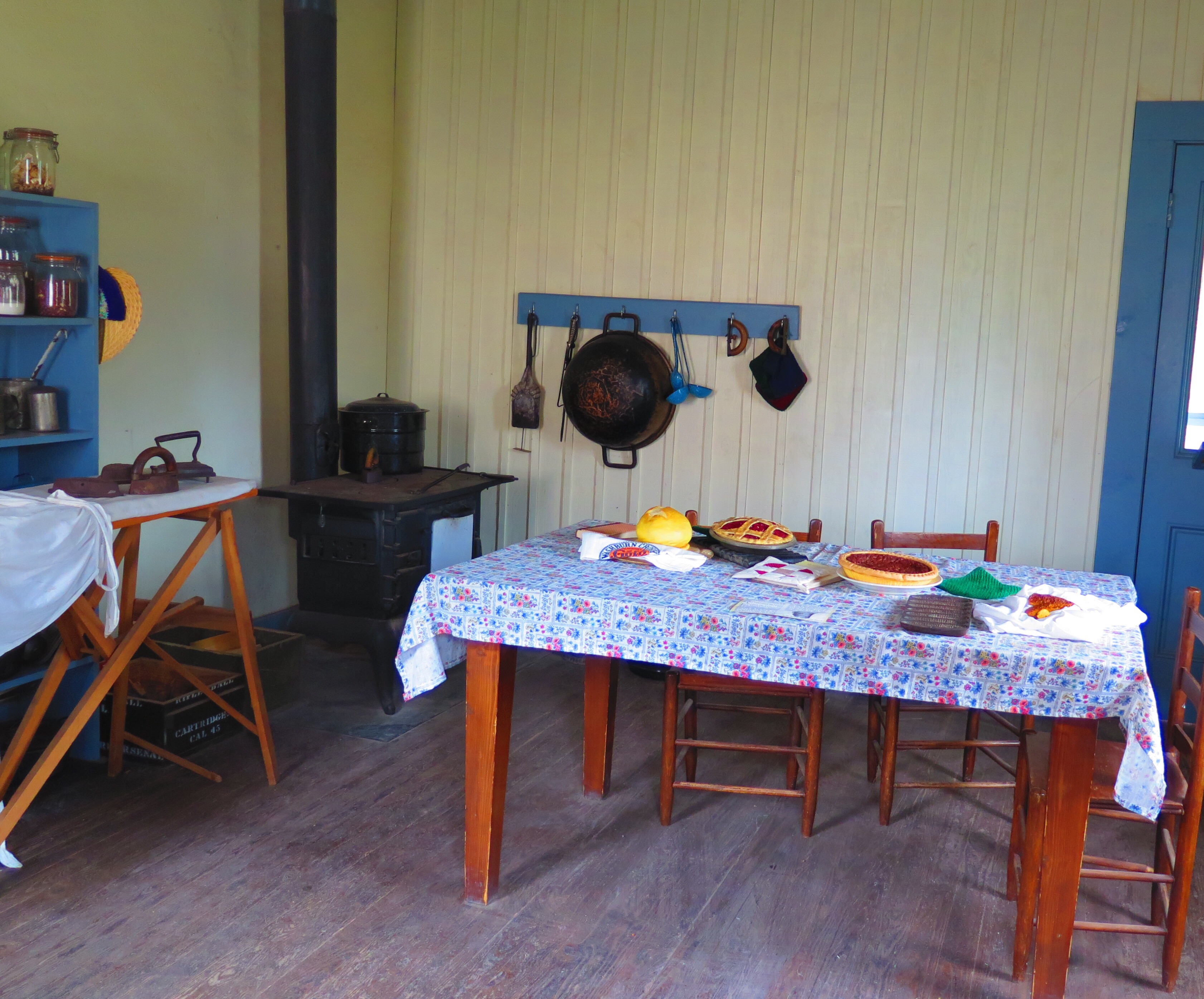 Inside the Commissary at the fort – as you can see, cooks had to get pretty creative with a minimal selection of goods. You can only do so much with peas, succotash, hominy and dried apples.