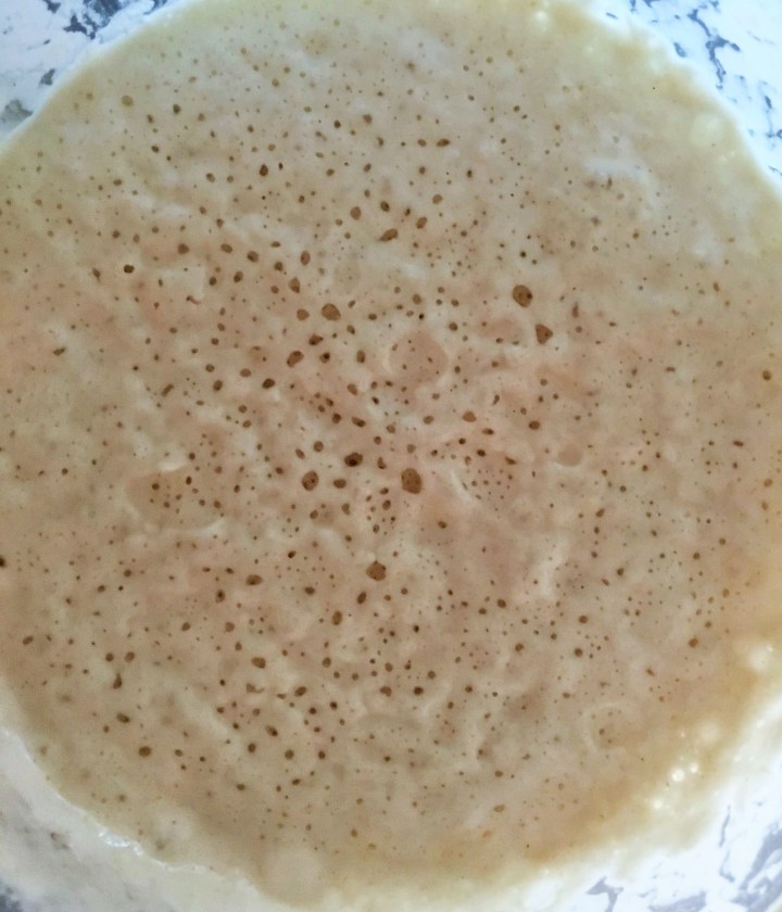 After a very busy weekend, I had a feeling much like when I realize I haven’t fed the pets all day – I forgot to feed the larger container hidden in the kitchen cabinet. I just knew I’d ruined my starter that I’d so diligently been growing. I also knew I had back-up in the fridge, but the thought of losing the big jar was a little sad.