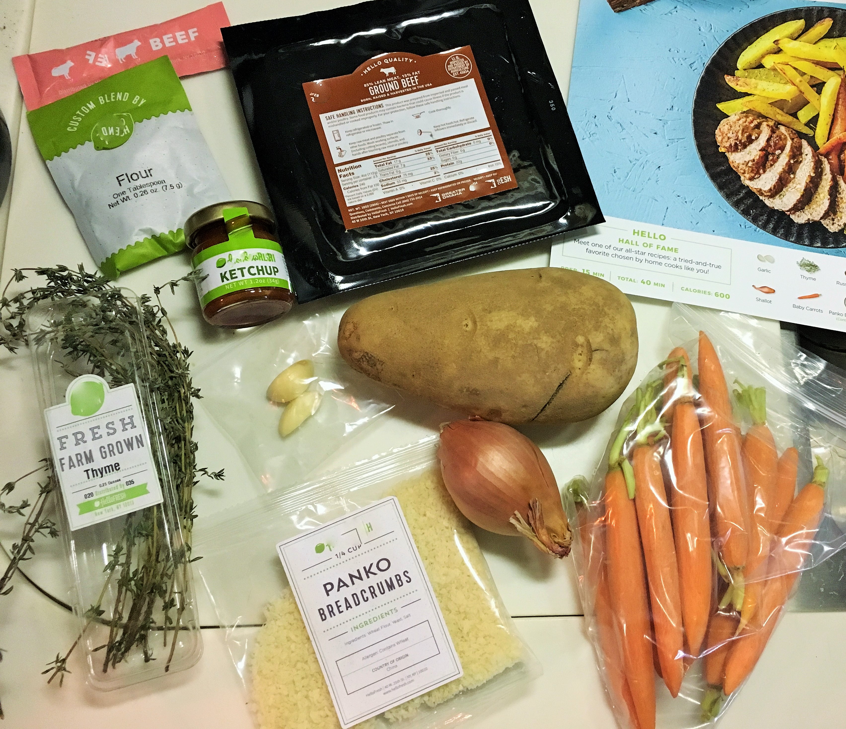 This is what arrived for the meatloaf dinner for two. Easy to follow instuctions are on the back of the card with the plated meal on it.