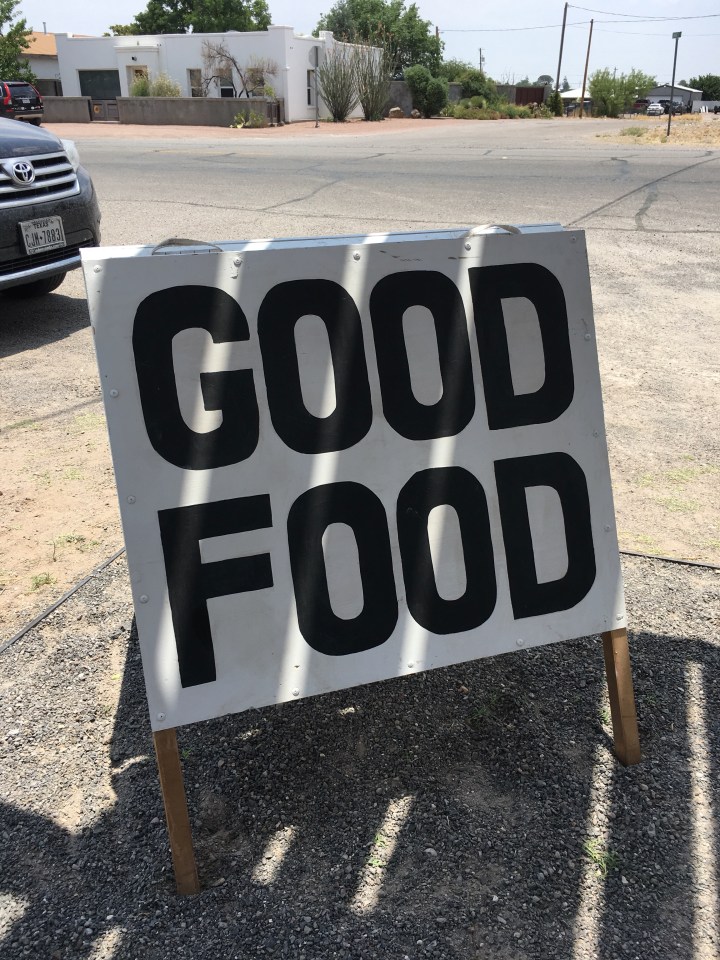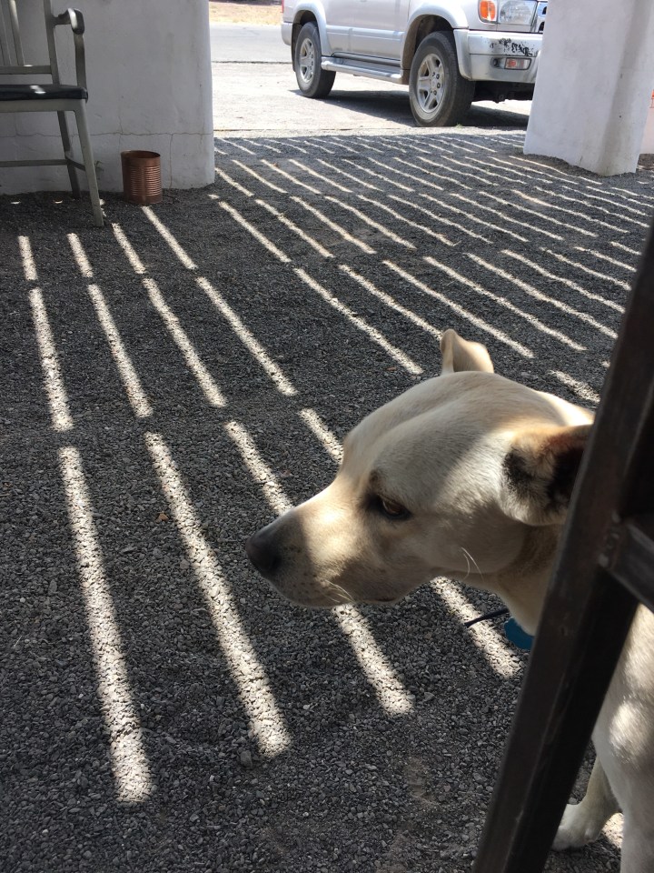 We ended up sitting outside under the new shade cover, and despite the heat, the West Texas breeze kept us comfortable. A patron’s dog named “Hal” sat with us, and got scraps once in a while because he didn’t beg. We thoroughly enjoyed our meals, and didn’t have much to share with the canine moocher.