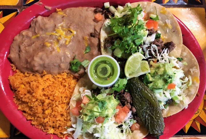 By appearances, the only differences in our plates were that I had beans and rice and he had extra tacos, but they tasted different. Adriana explained the difference is in the way the beef is prepared. His was cooked with jalapenos and other secret ingredients, while mine was a milder version with a jalapeño on the side if I wanted a little more heat.