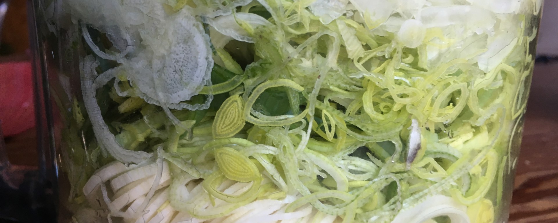 Tracking down the recipe, the secret ingredient was leeks. The prospect of slicing leeks and about a couple pounds of potatoes wasn’t enticing, until I realized that I could probably run them through the food processor.