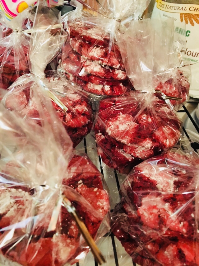 My initial plan was to bake a whole bunch of big brownies, flourless chocolate cookies, red velvet cookies, and whatever else struck my fancy while perusing through cookbooks and the internet. Various cookies, fancy cakes, sweet and savory breads, cupcakes and cookie bars are also on the Lions’ To Bake Lists. It’s going to be a terrific spread! Being a Valentine’s Day Bake Sale, all of our offerings will be wrapped in a Valentine’s Day theme and will be appropriate for gifting.