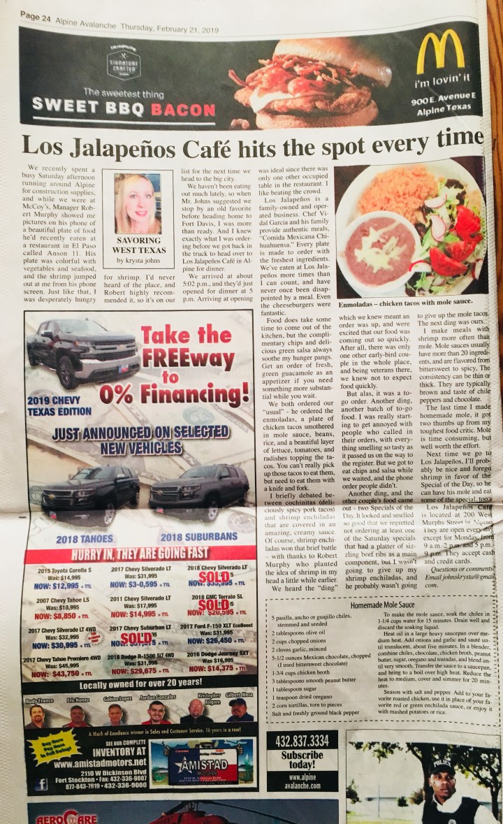 One thought on “Los Jalapeños Café in Alpine hits the spot every time