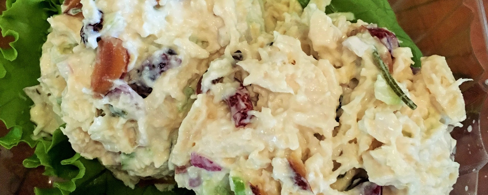 Cool chicken for at least half an hour, but it’s even better if you can refrigerate it overnight. Dice the chicken and mix with cranberries, onion, almonds and celery. Then, mix in mayonnaise and chill for a couple of hours. Serve on bed of lettuce, with your favorite crackers, or in a sandwich.