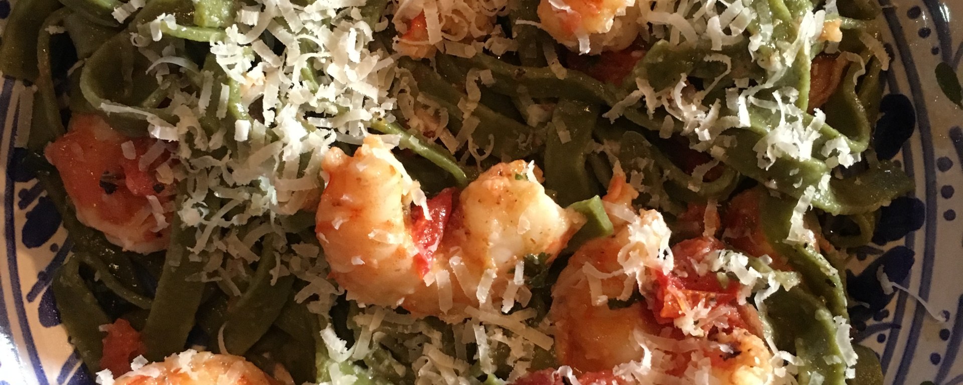 The other day, I grabbed a bag of green spinach fettuccine noodles at my local health foods store. You can find these at Blue Water Natural Foods in Alpine and at Stone Village Market in Fort Davis, as well as anywhere else fine noodles are sold. Or so I’m assuming. 🙂