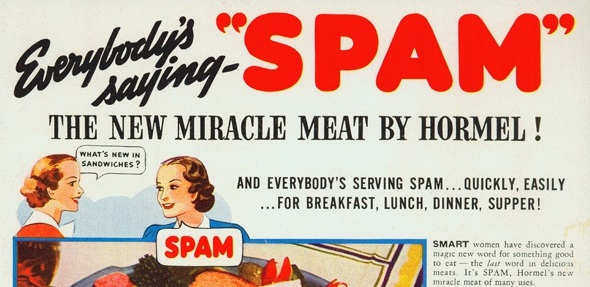 Spam was marketed to housewives as “the miracle meat” that didn’t need to be refrigerated. You could enjoy it hot or cold, straight out of the can, or used in many different recipes. What’s not to love, or at least like, about Spam?