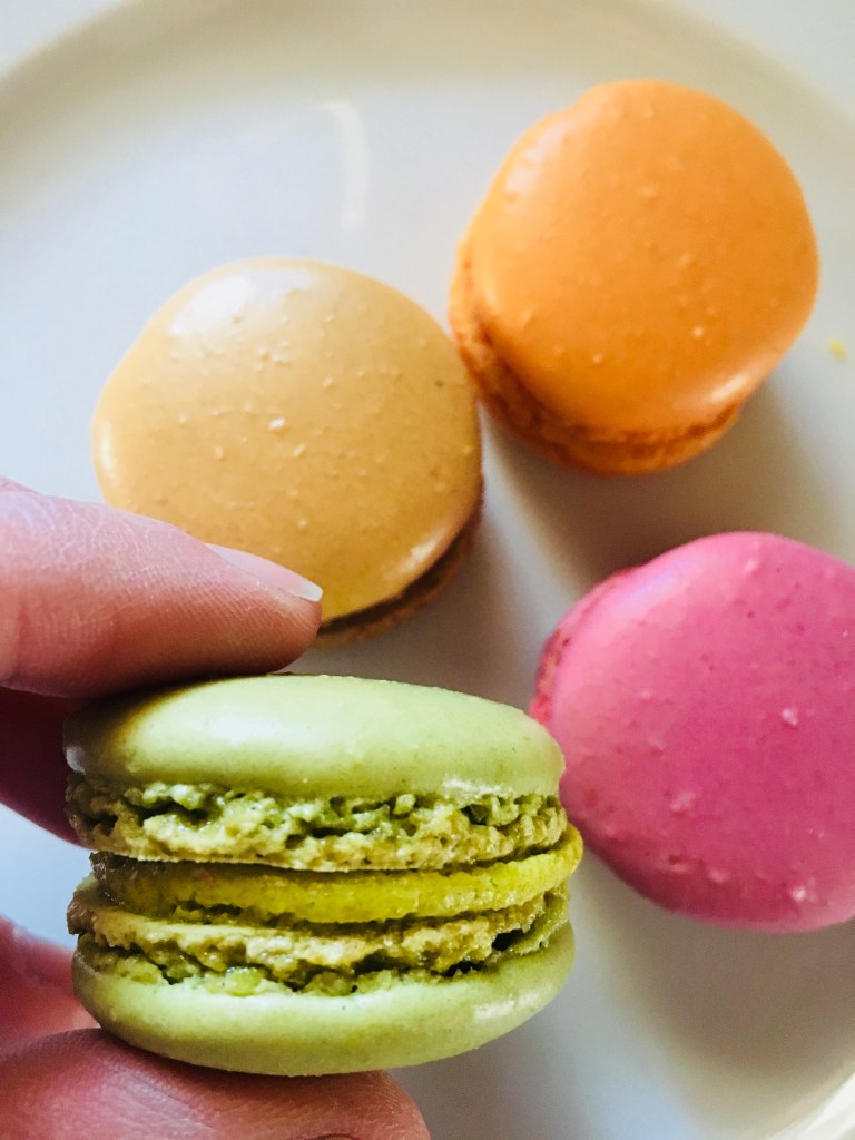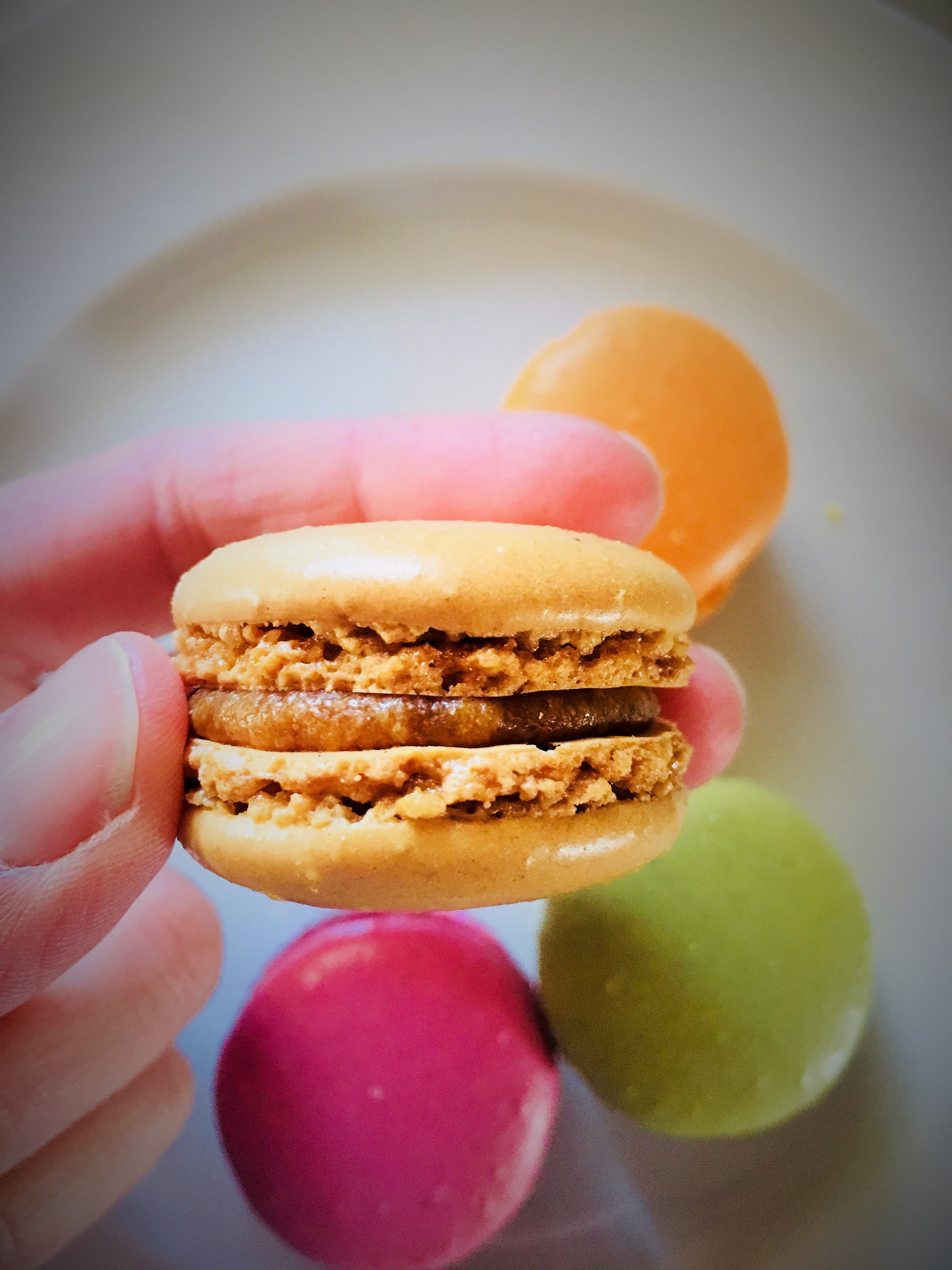 (Please focus only on the delightful macaron – pay no attention to my dry fingers or terrible manicure. Just the cookies, y’all. Just look at the cookies… )