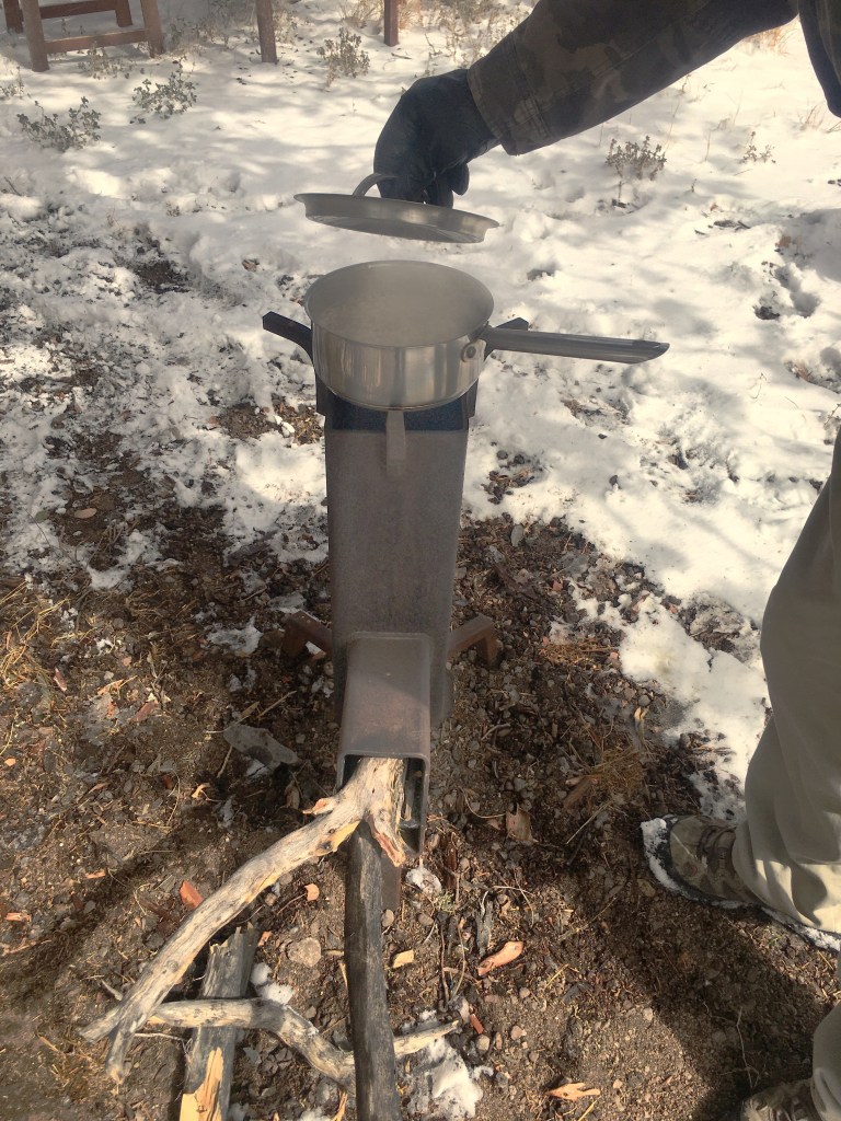 For those of you that don’t know about the rocket stove, it’s an incredible invention that’s been around for many years and enables you to create cooking heat using twigs and sticks. It’s now ranked up at the top of my favorite things because today, the rocket stove saved the day.