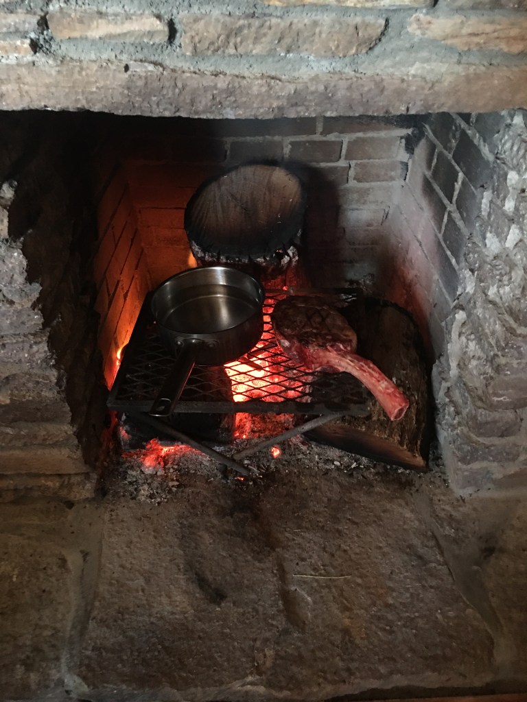Meanwhile, I reheated soup that I made yesterday and grilled a frozen steak – in the fireplace. Camping in the house isn’t so bad after all, at least I’m sleeping in my own bed and have my own bathroom.
